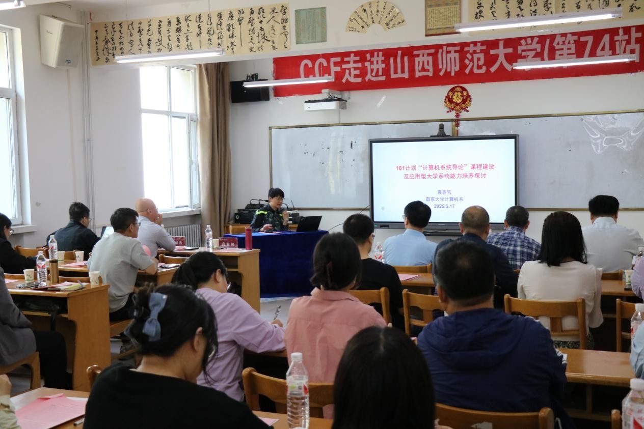 南京大学袁春风教授作了题为《101计划“计算机系统导论”课程建设及应用型大学系统能力培养探讨》的报告,该报告通过实例论证课程必要性,总结国内外系统能力培养经验,分析101计划中课程关联,提出应用型大学系统能力培养方案及核心课程教学路径。