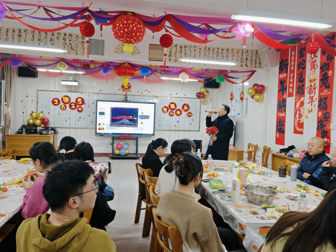 为迎接新的一年,公司于12月26日在北区208室举办了一场别开生面的师生元旦联谊会。此次活动涵盖了丰富多彩的内容,包括包饺子活动、员工才艺展示、曲老师的《黑神话:悟空》读书分享会,以及安经理和曲老师的精彩唱歌表演,现场气氛热烈、欢乐祥和,师生们度过了一个温馨难忘的夜晚。
