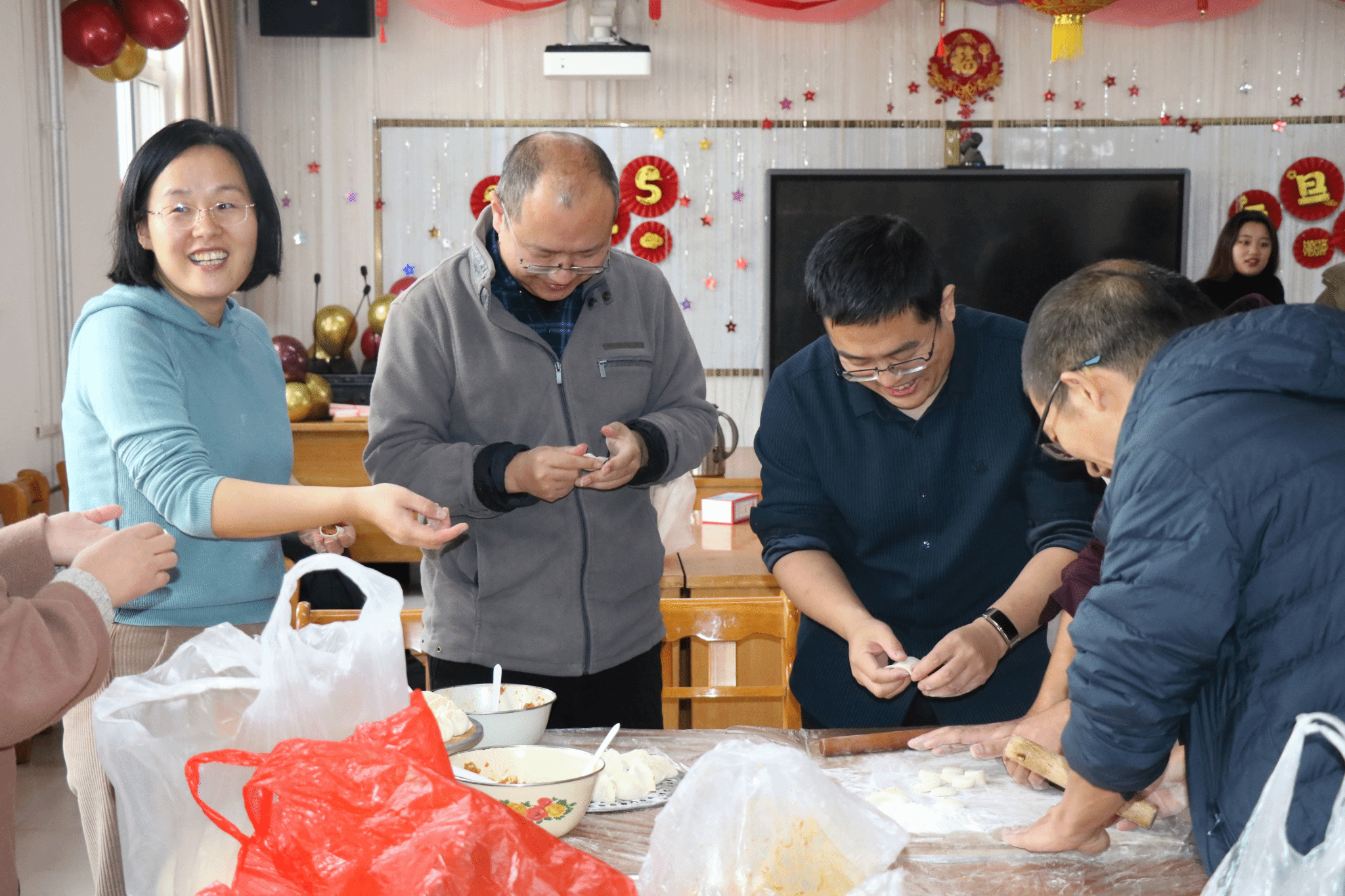 活动伊始,大家围坐在一起,纷纷投入到包饺子环节。老师与同学们一同动手,大家分工合作,和面、擀皮、包馅,忙得不亦乐乎。尽管有些饺子的形状不尽完美,但包饺子的过程充满了欢声笑语,展现了师生之间的亲密无间。在包完饺子后,大家的兴致依然高涨,不少教工提议来几局轻松的扑克牌游戏,而另一些则拉开了K歌的序幕,一时间教室里歌声与笑声交织在一起。包好的饺子被送到餐桌上,同学们和老师们一起品尝,饺子里的每一份温暖都传递着新年的祝福与期许。