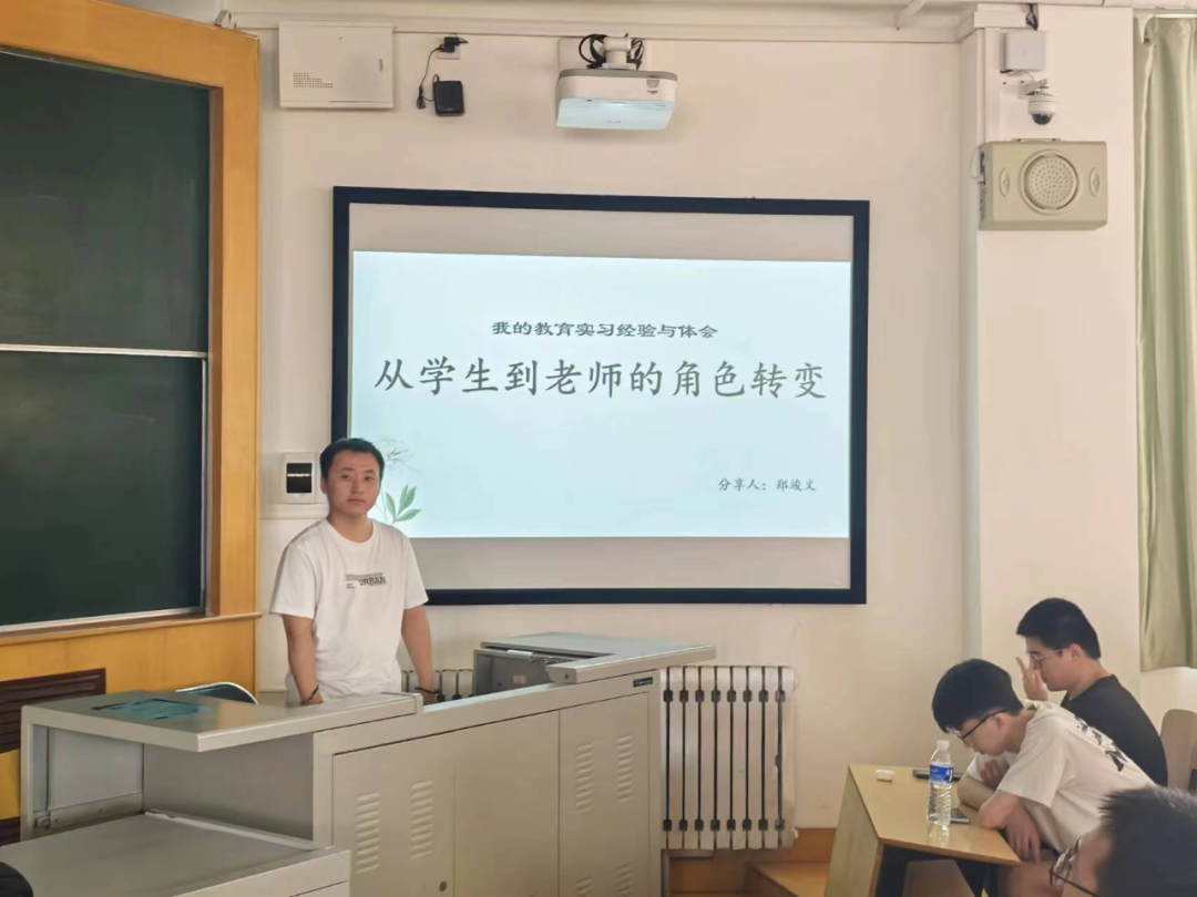 同时,优秀实习生代表郑竣文同学给同学们分享了自己实习经验,做了“从员工到教师的角色转变”的报告,郑竣文同学从角色转变、实习注意事项、班主任工作、教学工作和实习感悟五个方面跟大家做了分享。