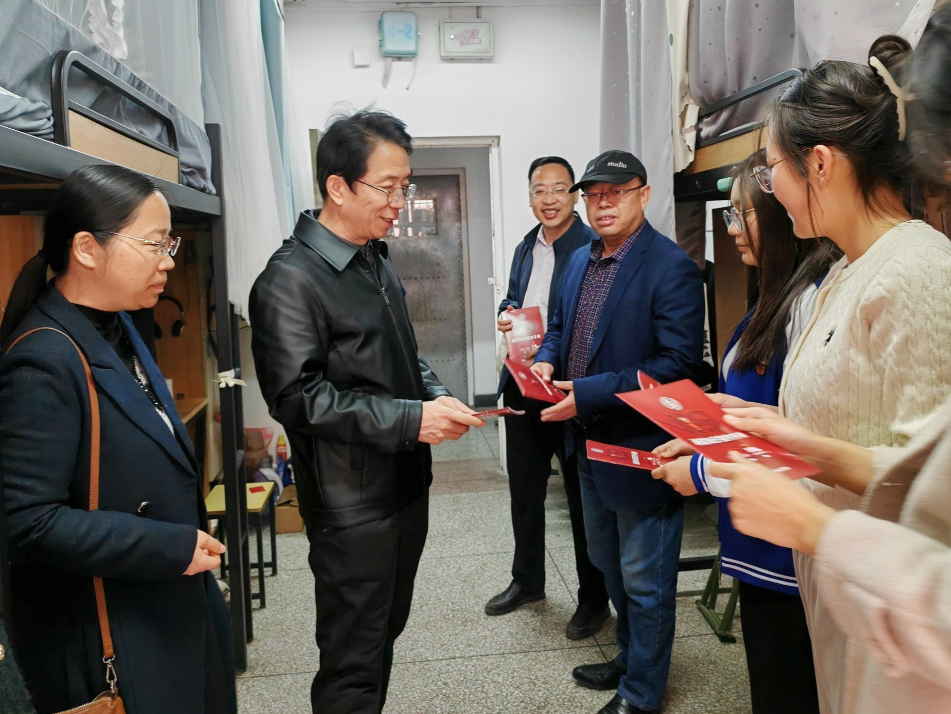 本次走访重点对宿舍内电器的使用情况进行检查。书院领导高度重视员工宿舍的安全管理问题,在走访过程中,他们与同学们进行了亲切交流,叮嘱大家重视用电安全,提高防范意识,杜绝使用违规电器。同时,领导们为大家发放了消防知识宣传手册,向同学们普及了相关的消防安全知识,并提醒他们切勿私拉乱接电线,确保用电安全,在离开宿舍时务必断电、落锁,确保自身生命和财产安全。
