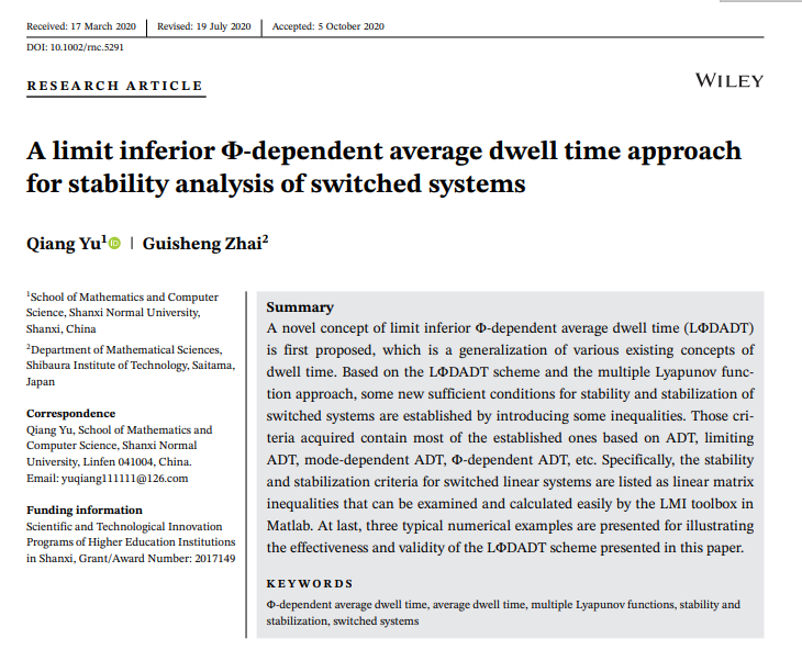 相关文章链接: https://doi.org/10.1002/rnc.5291