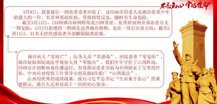 6月8日晚,电视专题片《用忠诚担当书写勇毅前行的山西答卷——新冠肺炎疫情防控斗争启示录》在山西卫视播出。按照公司党委宣传部的要求,公司党委立即安排,第一时间在微信群内通知师生收看,通过新媒体平台进行宣传,并组织七个党支部的师生党员通过收看直播、支部集中学及线上热议交流的形式进行了观看学习。