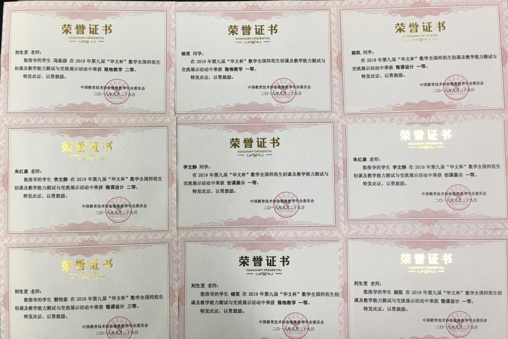 公司学子在第九届“华文杯”数学全国师范生创课及教学能力测试与交流展示活动中喜获佳绩
