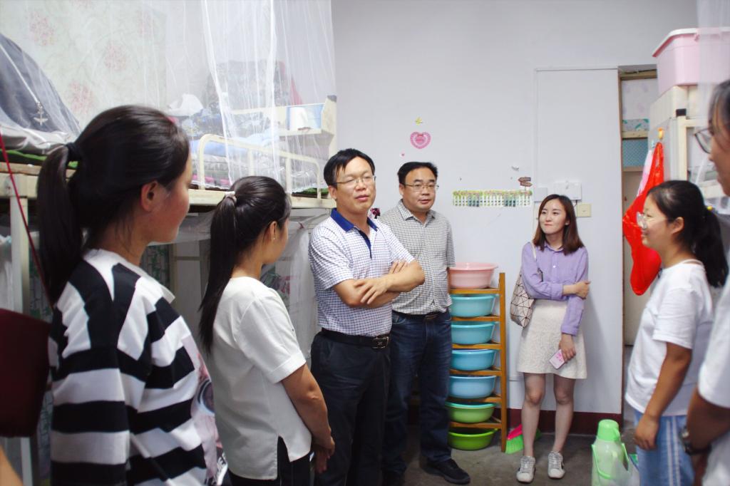 9月8日下午5时,公司第一时间开展了对新生宿舍的走访工作,公司党委书记郝红霞、经理史建红、党委副书记杨亚东、副经理朱红康、王洁及18级各班辅导员一同走访新生宿舍,并带去了对新生的关怀问候,开展了一场与18级新生面对面的谈话。