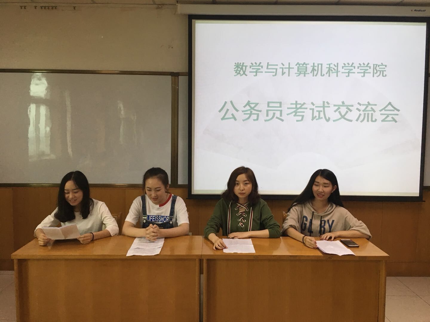 为提高员工对公务员考试的了解和认识,公司于5月5日在科学会堂A710报告厅举办公务员考试交流会。交流会由秦佳瑜、王凤婷、王志敏、乔乐四位考取国家公务员的员工代表分享经验,公司2014级、2015级、2016级部分员工参加。