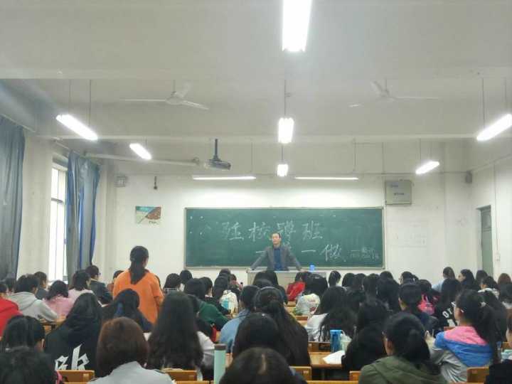 首先,陈老师传达了习近平总书记在全国两会上的重要讲话精神,阐述了开展“驻校蹲班,一学一做”教育实践的重要意义,并强调要加强对“一学一做”教育实践的组织领导,扎实开展教育实践。接着陈老师从班风学风建设、宿舍文化建设、理论知识学习和班级活动的组织开展等四个方面进行了教育实践的部署安排。陈老师强调要加强班风学风建设,同学们要尊重理解老师,在学习和生活中严于律己,力争上游,同时班委要起模范带头作用,通过建立并完善班级管理制度,让员工做到“有法可依,有法必依”。宿舍文化建设也是需要注重的方面,宿舍是员工生活的重要场所,宿舍文化建设能培养员工良好的行为习惯,引导健康向上的宿舍文化建设价值取向。接下来,陈老师要求同学们要时刻关注时事,加强理论学习,培养政治敏感度,提升语言思维能力,学会多读书、读好书、常读书,增强知识储备。最后,陈老师提出在班级活动的组织开展方面要注重多样化,走出教室,开展第二课堂,兼具教育性与娱乐性。