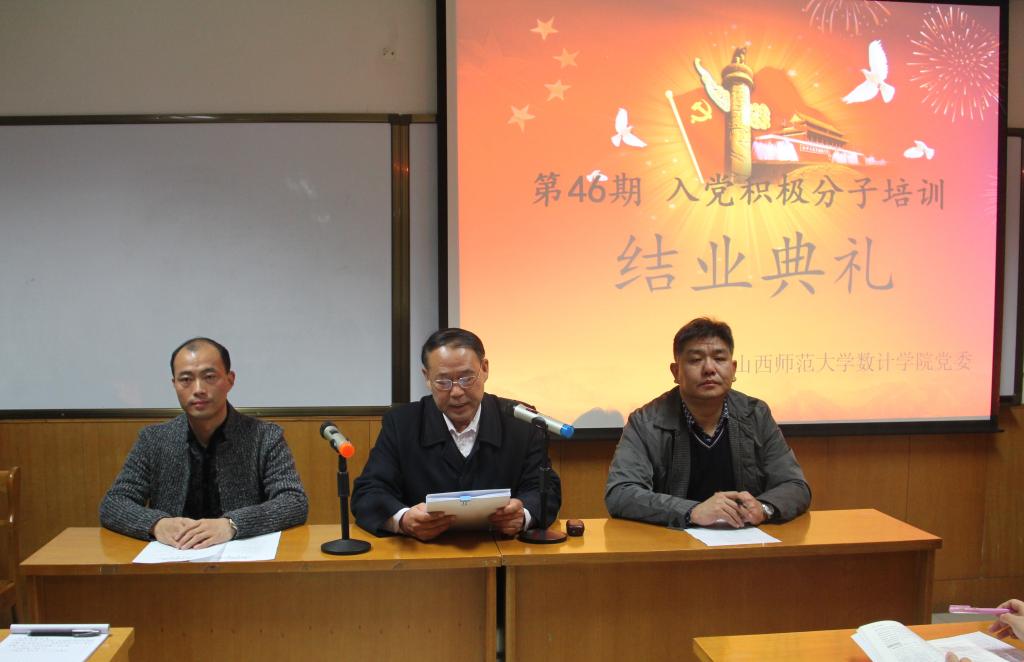 2016年11月7日晚七点,公司在科学会堂A710会议室举办第46期入党积极分子培训班结业典礼。公司党委书记王成喜、党委副书记张珂、团委书记陈立记及全体入党积极分子参加了此次结业典礼,会议由陈立记老师主持。