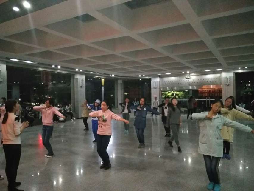 选拔开始之前,工作人员将报名人员分为四组,分别跟原啦啦操队员学习一些简单的动作。教学过程中,同学们对啦啦操认真对待,体现了同学们的团队意识。选拔开始,报名人员的动作整齐有力,用身姿诠释着青春的奔放,评委以动作协调性、身体柔韧程度、力量和表现力作为标准进行严格地筛选。最后,有21名员工脱颖而出进入啦啦队,6名员工进入礼仪队。