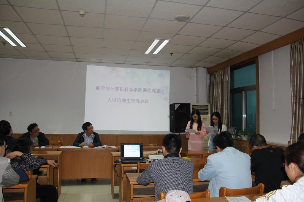 其次,计算机系主任贾郭军老师就如何改造课堂教学,以提高教学效果发表了自己的观点和看法。随后,其他13名教师代表对教学改革原则、人才培养目标及学习效果评价方式等方面进行了讨论。