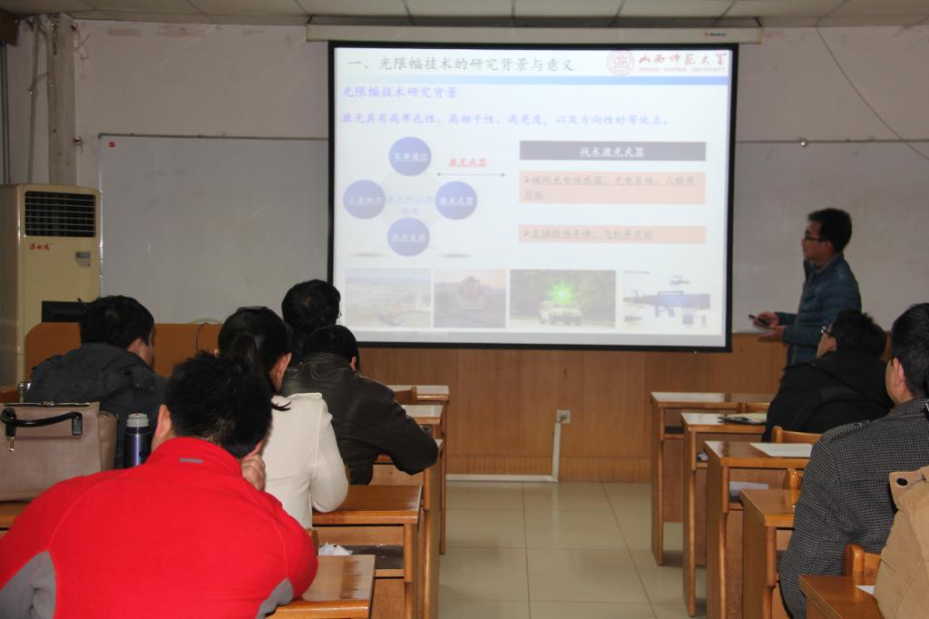 熊耀兵老师作题为《高损伤低限幅阀值级联光限幅器》的报告