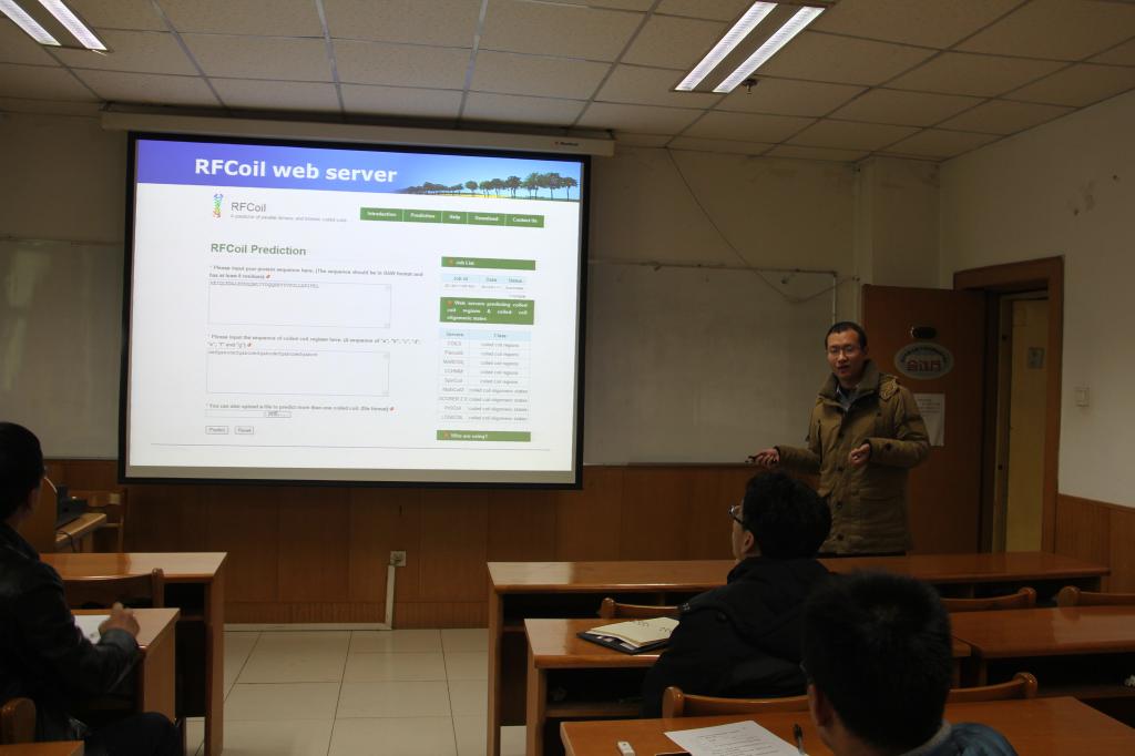 王晓锋老师作题为《卷曲螺旋寡聚体状态预测》的报告